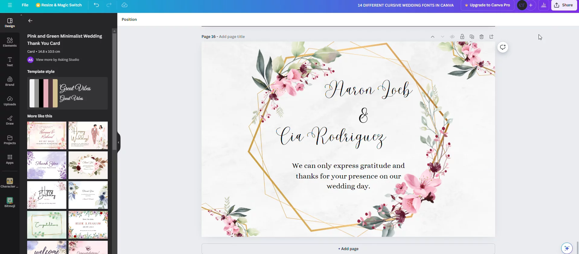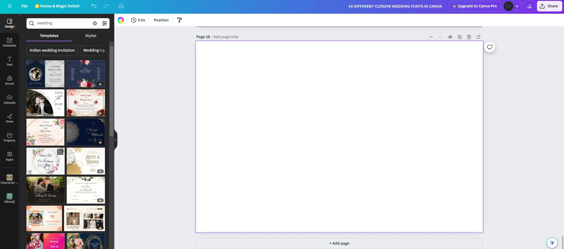 How to find and use Cursive fonts in Canva for Weddings
